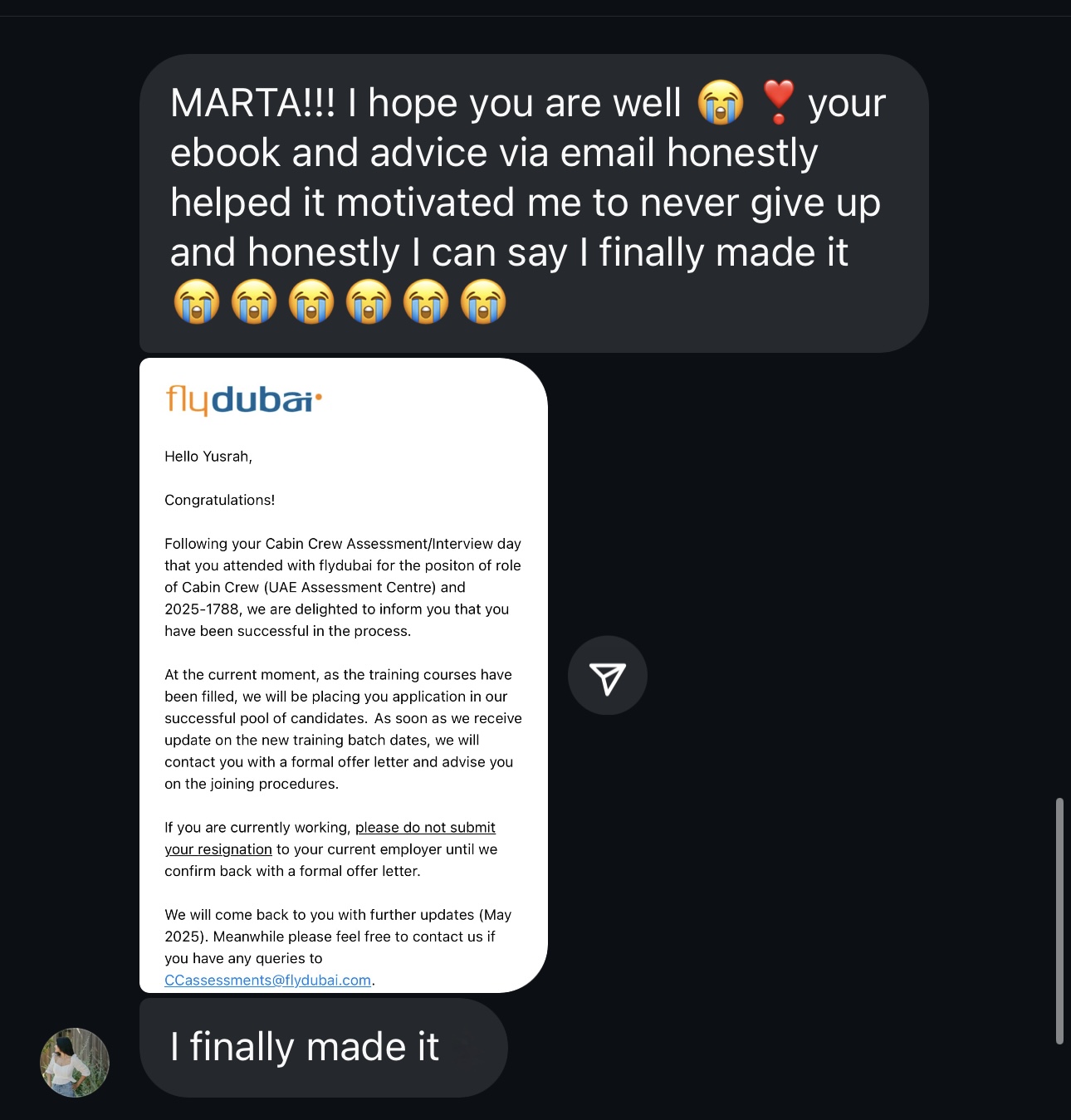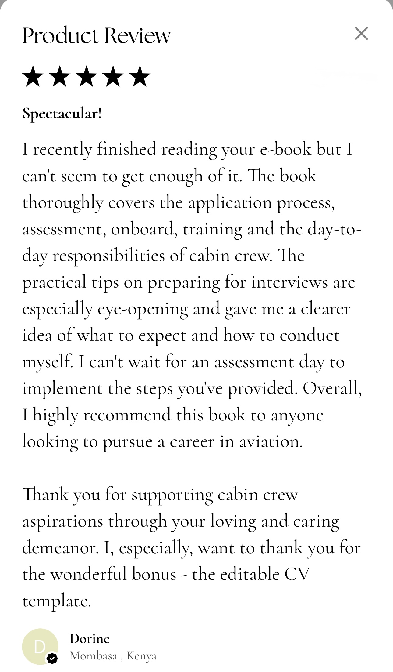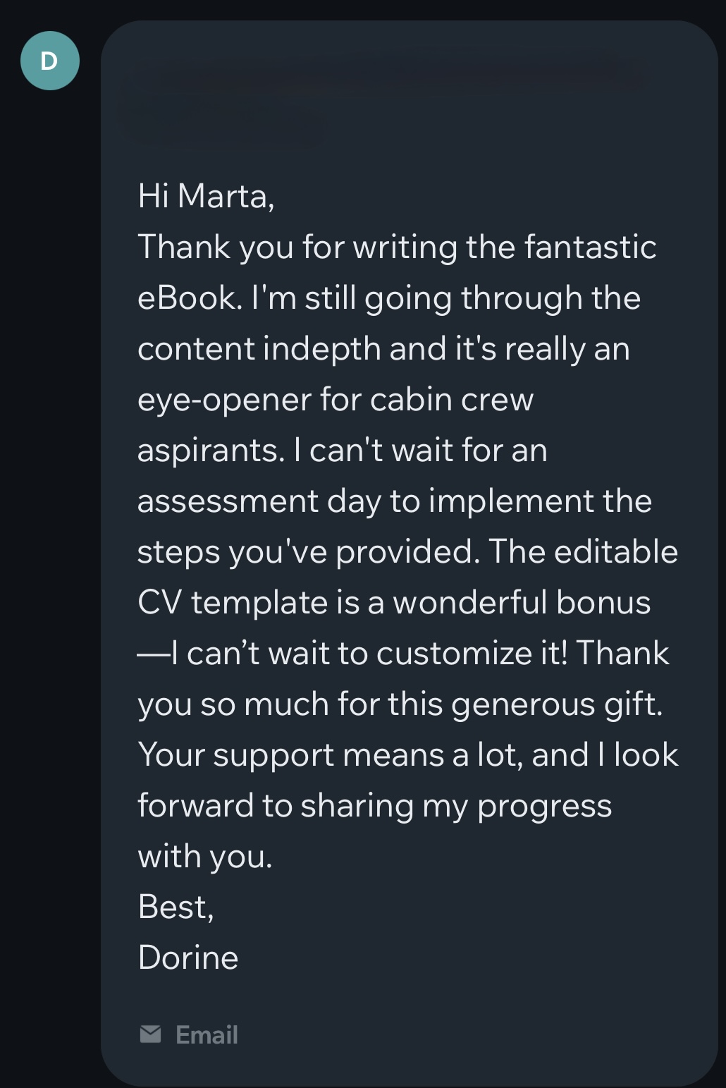 My mission is to help aspiring cabin crew skip the long, painful trial and error process I went through, reduce stress, and get hired faster.