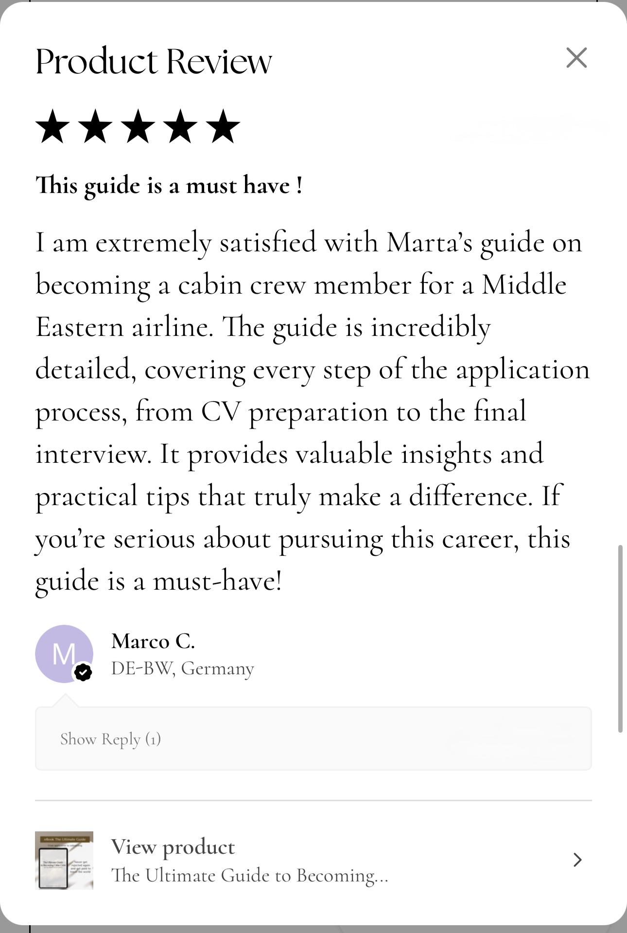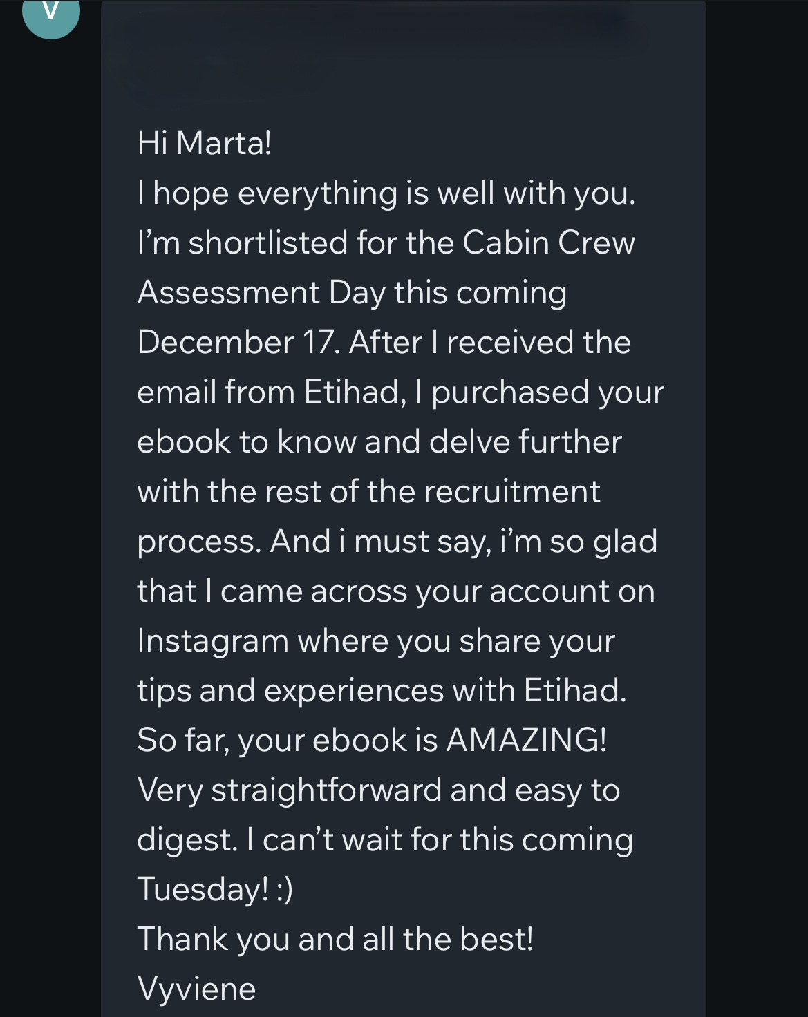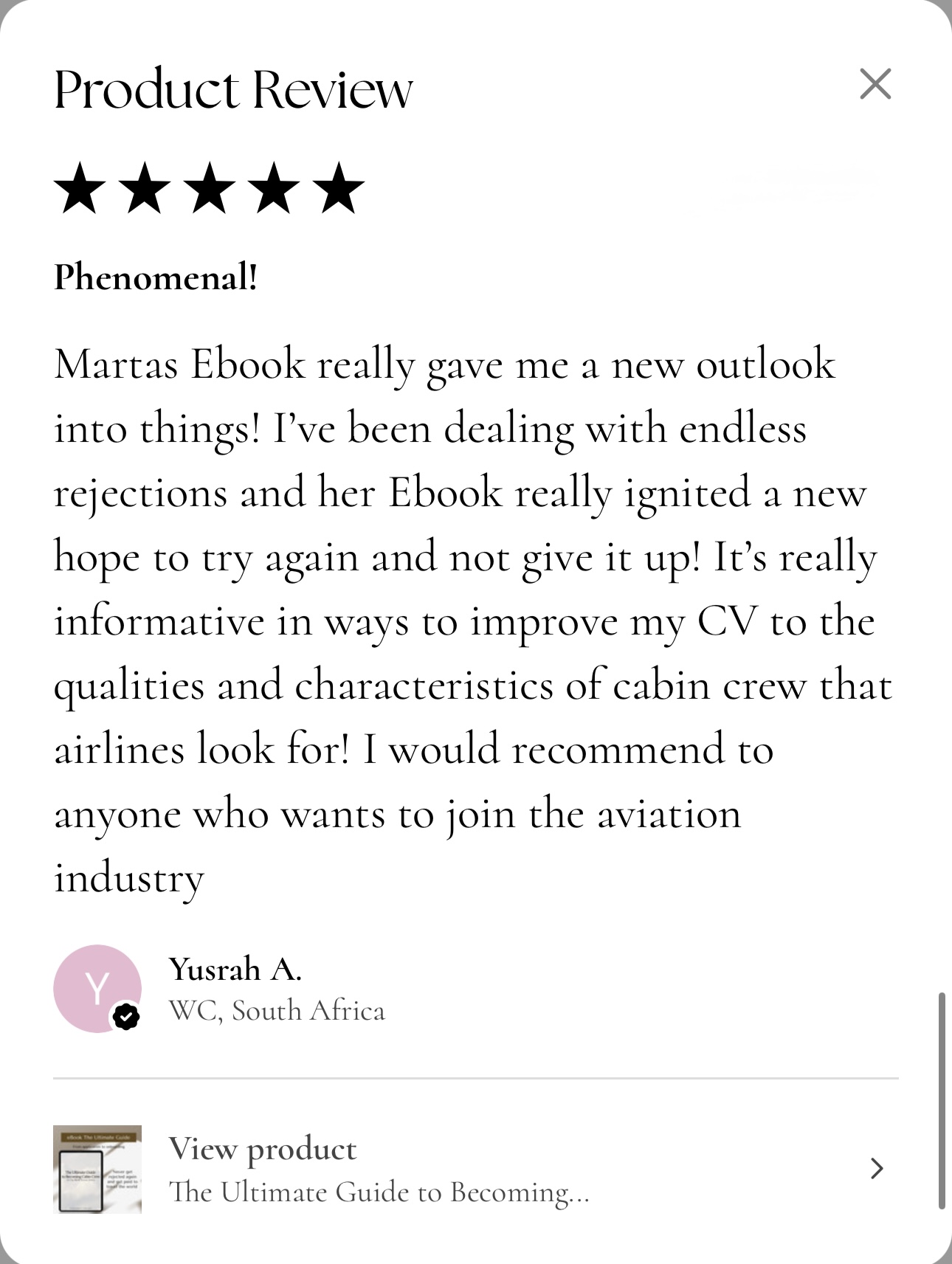 My mission is to help aspiring cabin crew skip the long, painful trial and error process I went through, reduce stress, and get hired faster.